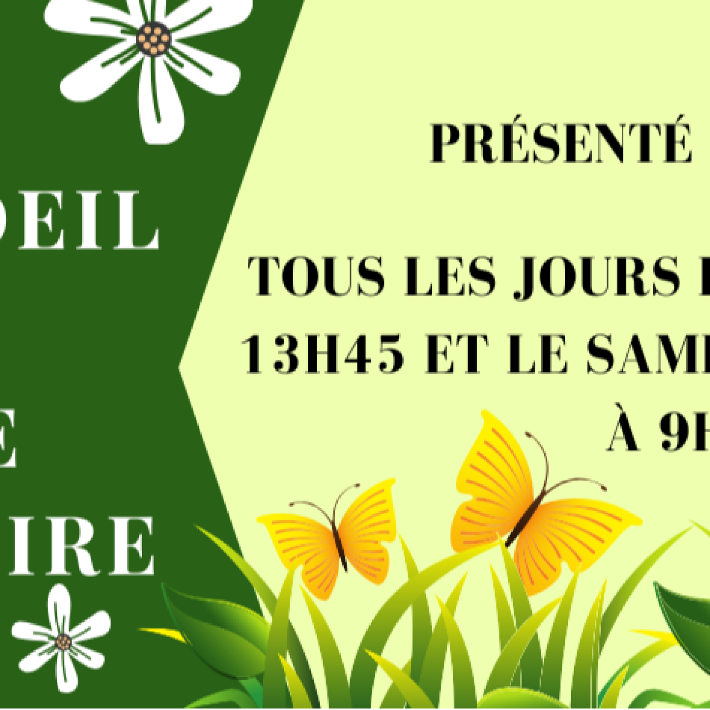 tous les jours de la semaine à 13h45 et le samedi et dimanche à 9h45