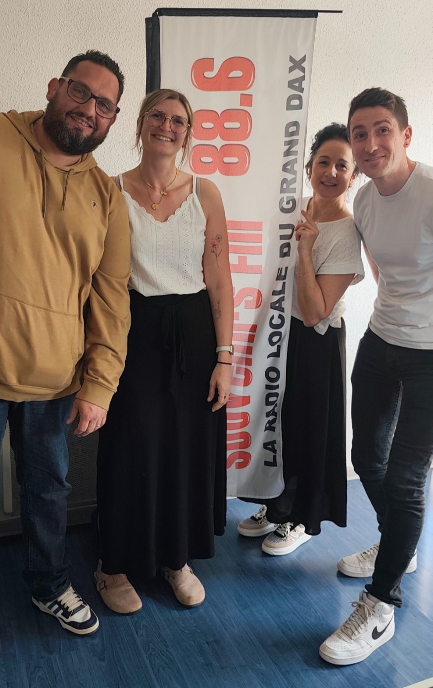 L’invité(e) du 12-13 recevait aujourd’hui l’équipe passionnée de l'association "En Roue Libre Ensemble pour nos Aînés" : Jean Lassalle (Président), Emmanuel Mallet (Trésorier), Cathy Pargade (Secrétaire) et Bérénice Deyres (Auxiliaire de vie). Animateurs en gérontologie dans diverses structures du Grand Dax, ces professionnels ont décidé de s'unir pour créer du lien social et lutter contre l'isolement. cette jeune structure bénéficie déjà d'un soutien  fort de la part de la Peña Pin Pon et des sapeurs-pompiers de Dax.